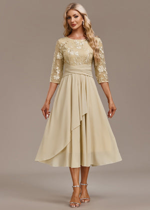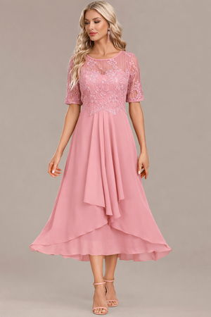 The Sophie Navy Lace Short Sleeve Round Neck Dress is crafted in a classic navy tone with a midi length for an elegant finish. It features a round neckline, short sleeves, and delicate lace with sequin details layered throughout. The dress is designed with a back zipper closure for easy wear and provides a flowy fit with comfortable coverage.