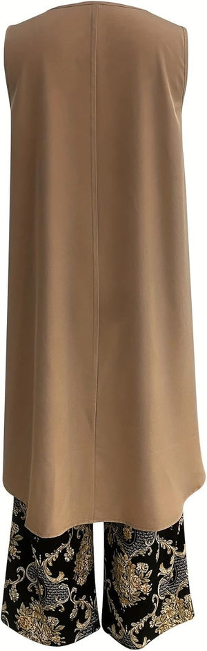 - Type: Two-Piece Set (Tunic Top & Wide-Leg Pants)